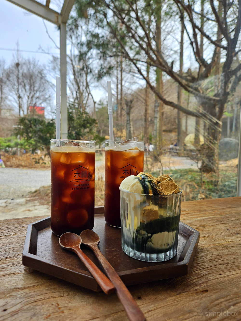 카페 목천의 아이스 아메라카노는 약간의 산미가 느껴지는 게 특징이고, 아이스 쑥떡절미는 바닐라 아이스크림에 쫄깃한 쑥떡과 녹차가루가 잘 어울렸어요. 엑설런트같은 고급스러운 바닐라아이스크림과 녹차의 조합이 이질감 없이 맛있었습니다.