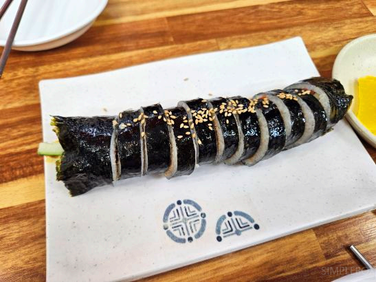 주문한 고기떡만두국은 국물이 담백해 속이 편안했습니다. 만두 속이 꽉 차 씹는 맛이 좋고 국물과 잘 어울렸습니다. 참치김밥은 소박하지만 재료가 알차고 간이 적당해 부담 없이 즐길 수 있었어요. 만두국과 함께 먹으니 포만감도 충분했습니다.