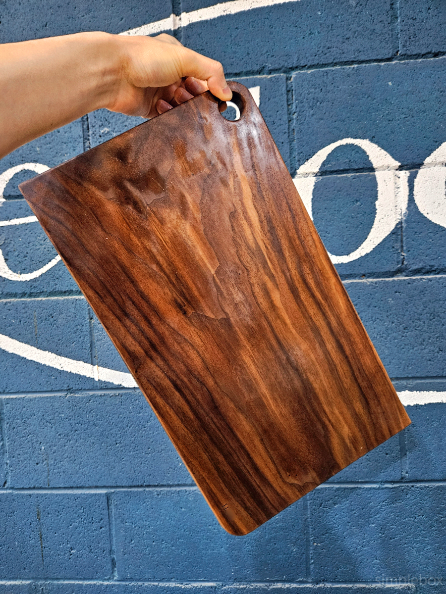 저는 내구성이 좋고 세련된 느낌을 원해 월넛을 선택했습니다. 도마 선택은 도마의 최종 결과물에 큰 영향을 미치기 때문에 신중하게 골라야 합니다.