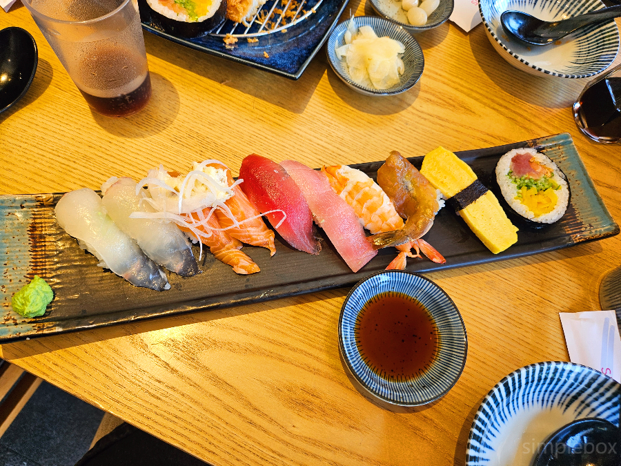 초밥은 재료가 신선했고, 연어 초밥이 특히 인상 깊었어요. 밥의 간도 적당해서 전체적으로 깔끔하고 부담 없이 먹기 좋았습니다. 새우튀김은 바삭하고 기름기 없이 잘 튀겨졌고, 소바는 시원하고 깔끔한 국물이 입맛을 돋워줬어요.