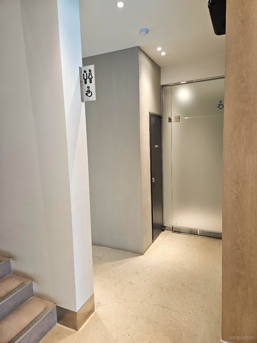 1층에는 주문 공간과 테이블이, 2층에는 넓고 쾌적한 좌석 공간이 마련되어 있었습니다. 인테리어는 우드톤과 모던함이 잘 어우러져 세련된 느낌을 주었고, 층마다 화장실이 있어 편리했습니다. 엘리베이터도 있어 이동이 편했어요.