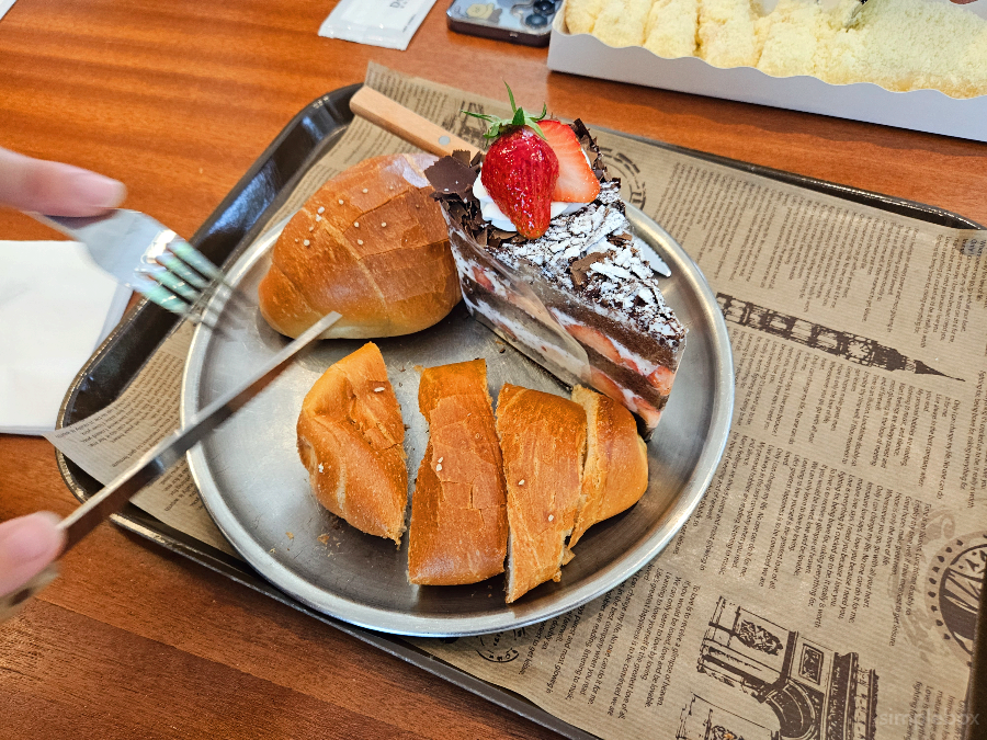 입구에 들어서자마자 다양한 빵과 케이크가 진열돼 있어 보는 재미가 있었습니다. 저희는 아이스아메리카노와 소금커피를 주문했는데요, 아메리카노는 산미가 은은하게 감돌며 깔끔했고, 소금커피는 단맛과 짠맛이 조화롭게 어우러져 색다른 매력을 느낄 수 있었습니다. 처음에는 생소했지만, 잘 저어 마시니 더욱 맛있더라고요.