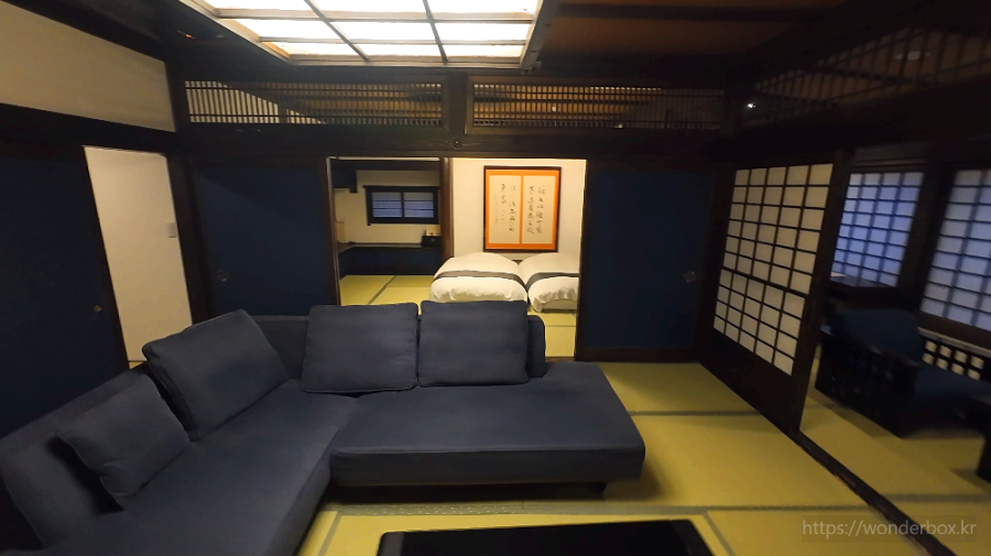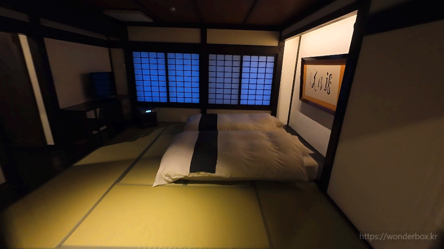 류곤료칸의 객실은 일반적인 호텔과는 다른 독특한 매력을 지니고 있습니다. 대부분의 객실에는 다다미가 깔려 있으며, 전통적인 일본식 인테리어와 함께, 고급스러운 소품들이 배치되어 있어 과거 일본 전통에 들어와 있는 듯한 느낌이 느껴졌습니다.