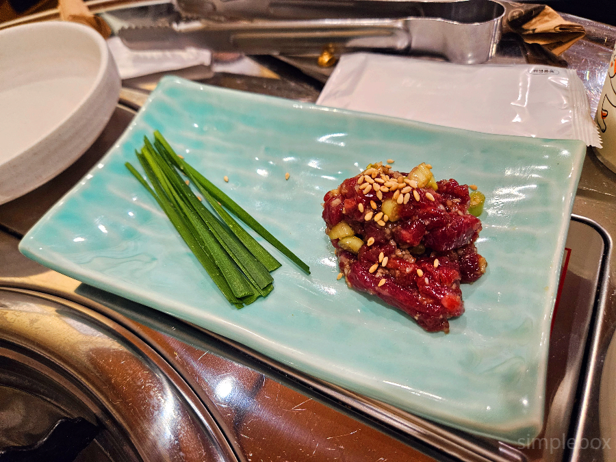 육회도 빠질 수 없죠. 한우투뿔육회는 고기 질이 정말 좋아서 입에서 사르르 녹는 부드러움이 느껴졌어요. 적당히 간이 돼 있어서 고소함과 단맛이 조화롭게 어우러졌고, 배나 달걀노른자 없이도 재료 본연의 맛이 살아 있었어요. 곱창이 나오기 전 에피타이저로도, 술안주로도 딱입니다.