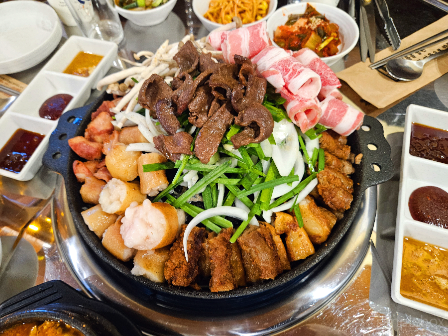 저희는 곱창모둠을 먹었는데, 곱창은 쫄깃하고 탱탱하면서 고소한 맛이 정말 일품이었어요. 불판 위에서 지글지글 익어가는 곱창은 적당히 기름지고 깊고 진한 풍미가 입 안에서 퍼졌습니다. 불향이 진하게 배어 있어 먹을수록 맛이 더 끌리죠. 특히 곱창의 식감은 탱탱하고 쫄깃해서, 한 입 먹을 때마다 고소한 맛이 가득하고, 전혀 느끼하지 않아 계속 들어가는 맛이었어요. 곱창모둠 전체가 정말 맛있고, 그 탱탱한 식감이 계속 생각나게 합니다.