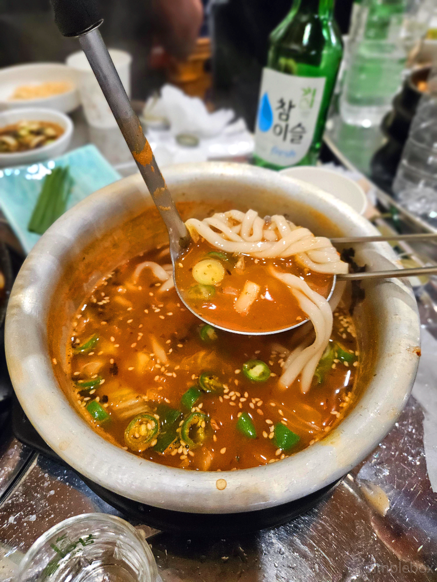 곱창을 실컷 즐긴 후, 깔끔하게 입가심할 겸 주문한 오징어김치칼국수는 기대 이상이었어요. 김치의 칼칼함과 오징어의 쫄깃함이 어우러져 속이 확 풀리는 느낌! 국물은 시원하고 감칠맛이 살아 있었고, 면도 퍼지지 않고 탱글탱글하게 잘 삶아져 있었어요. 곱창 먹고 마무리로 딱 좋은 메뉴였습니다.