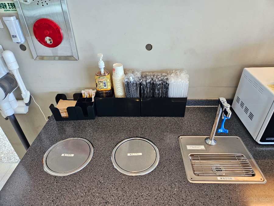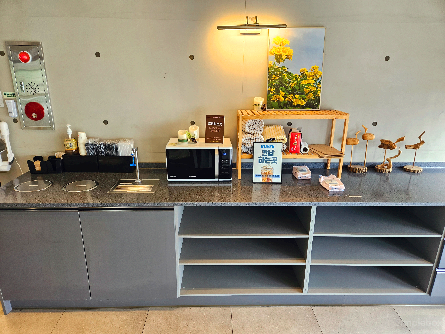 이 카페는 전용 주차장이 넓게 마련돼 있어 차량 이용 시 아주 편리해요. 또, 셀프 공간도 잘 정비되어 있어 휴지, 물티슈, 빨대, 생수, 담요 등 필요한 물품들을 자유롭게 이용할 수 있습니다. 이런 세심한 배려 덕분에 만족도가 훨씬 높았습니다.