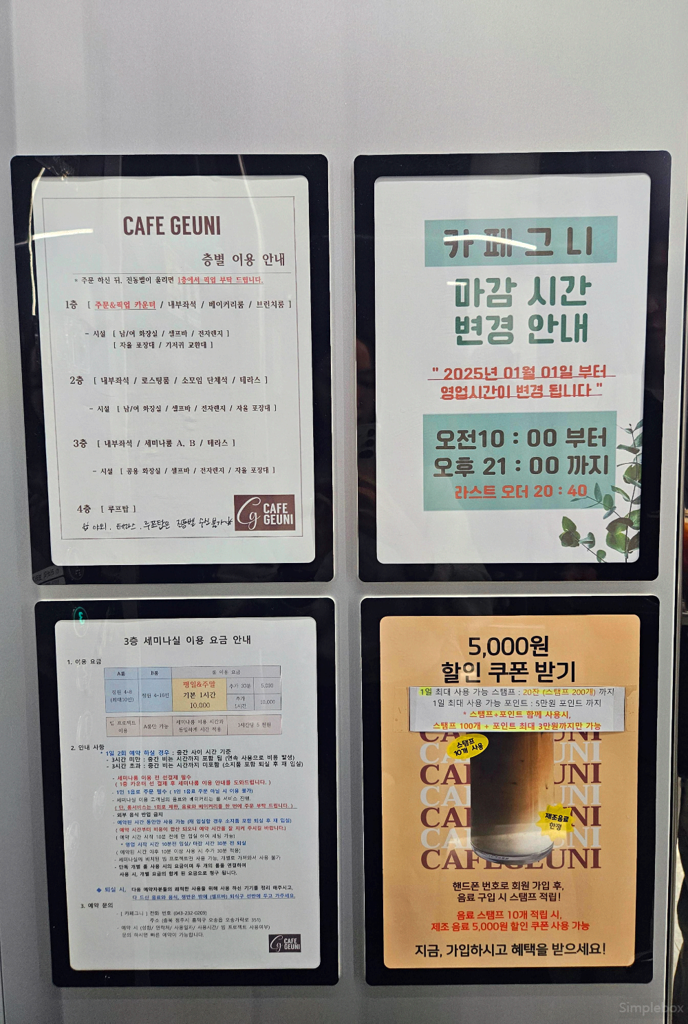 - 영업시간: 10:00 - 21:00, 20:40 라스트 오더