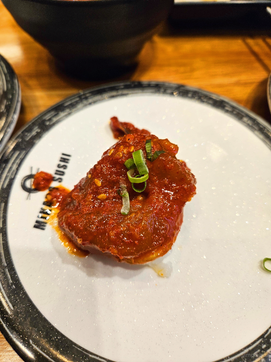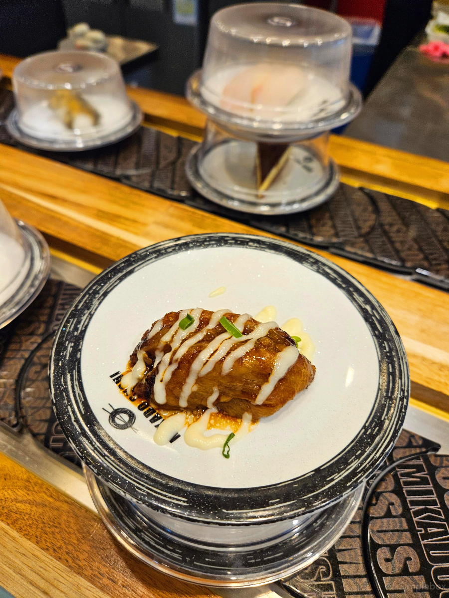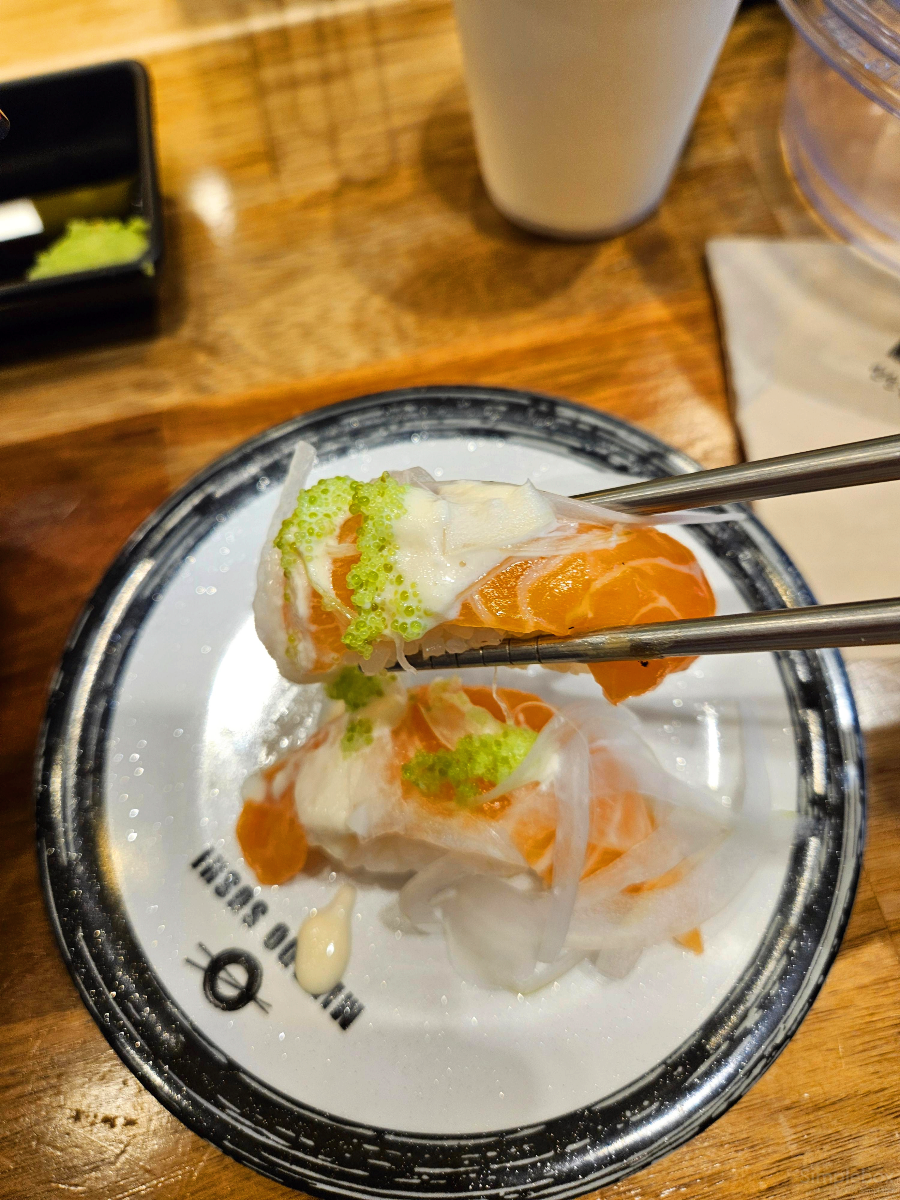 이곳은 1접시에 1,900원이라는 가격으로 70여 가지의 다양한 스시를 접할 수 있습니다. 특히 양파연어롤과 육회초밥은 꼭 드셔보시길 추천드려요. 신선한 재료와 맛이 굉장히 인상 깊었고, 초밥 외에도 마카롱, 푸딩, 과일 등 디저트류도 준비되어 있어 입가심용으로 딱 좋았습니다. 언제든 먹고 싶은 걸 집어먹을 수 있어 좋았어요.