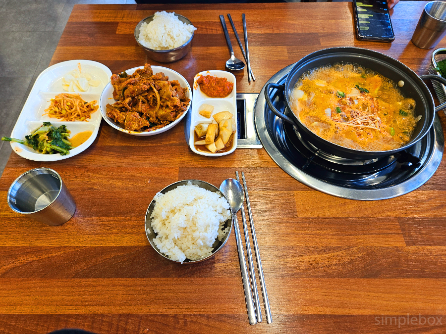 된장찌개 국물에 라면사리 넣어 한 입, 맛있는 제육볶음 한 점, 상추에 싸서 한 쌈까지. 진심으로 만족스러운 한 끼였어요. 다음엔 또 배고플 때 재방문할 예정입니다!