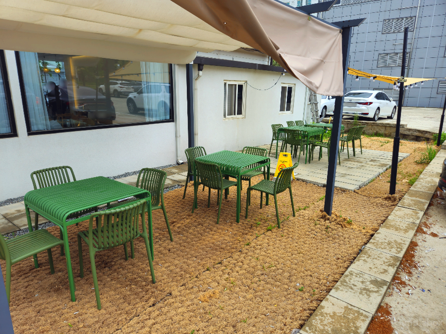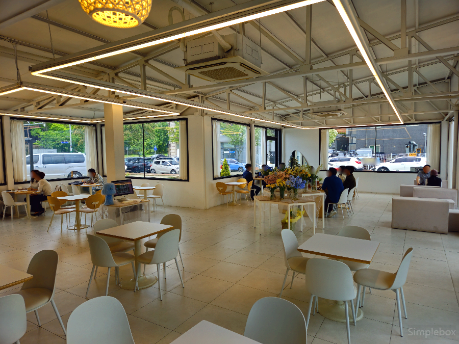 내부는 밝고 세련된 느낌의 인테리어로 꾸며져 있었어요. 전체적으로 화이트 톤에 우드 감성이 더해져서 따뜻하면서도 트렌디한 느낌이었고, 인스타 감성 물씬 느껴지는 소품들이 곳곳에 배치되어 있어 사진 찍기에도 정말 좋았어요. 야외 테이블도 준비되어 있어서 날씨 좋은 날에는 밖에서도 커피 한잔 즐길 수 있을 것 같더라고요. 무엇보다 내부 공간이 넓고 좌석도 다양하게 마련돼 있어서 여유 있게 앉아 이야기 나누기 딱 좋은 분위기였어요.