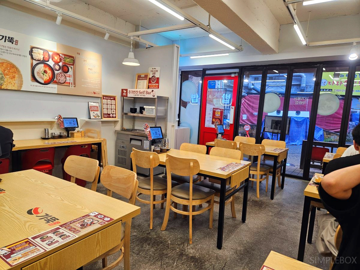 1인용 테이블이 벽면을 따라 배치돼 있어 혼자 방문해도 부담 없고 실제로 혼밥하는 손님도 많았습니다. 방학 중이었음에도 학생 손님들이 꽤 있었고, 젊은 층이 주로 방문하는 모습이었습니다. 실내는 조용하고 단정한 분위기였습니다.