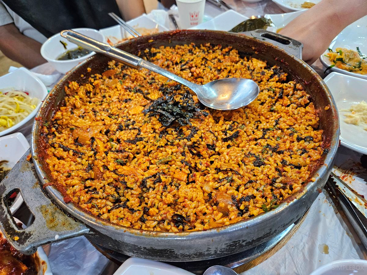 저희는 아나고스끼야끼를 주문했어요. 자작하게 깔린 국물 위에 양념된 아나고가 올려져 있었는데, 매콤하면서도 감칠맛이 살아있었어요. 국물에 밥을 비벼 먹으면 훨씬 진한 맛이 나서 마무리까지 만족스러웠습니다. 다만 아나고 특성상 가시가 있어 먹는 도중 주의가 필요했어요. 함께 방문한 지인 중 한 분은 가시 때문에 조금 힘들어했답니다. 가시가 입안이나 목에 걸릴 경우 불편할 수 있으니 천천히 발라 먹는 것이 좋아요. 그럼에도 불구하고 국물 맛과 볶음밥 맛은 훌륭했고, 양도 넉넉해서 배부르게 먹을 수 있었습니다.