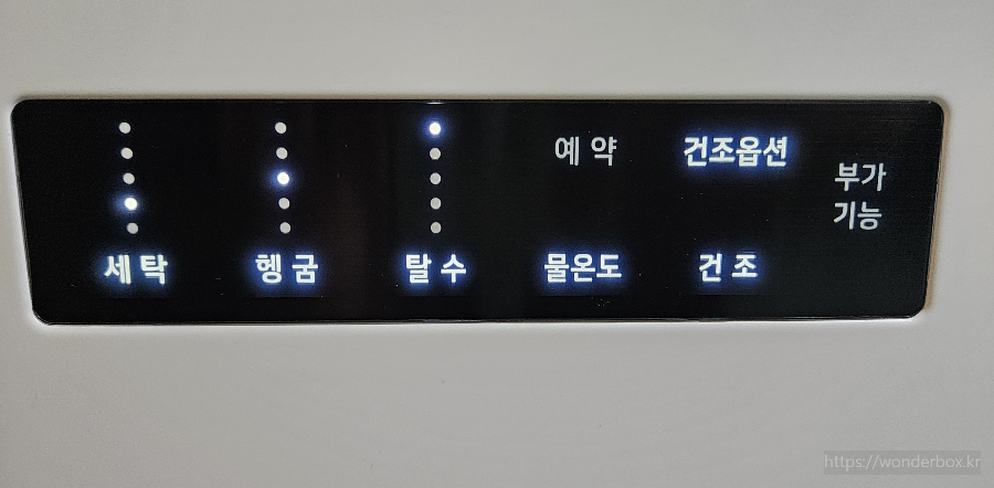 디스플레이가 직관적이고 터치가 민감하게 반응해서 쉽게 프로그램을 선택할 수 있었습니다. 또한, 터치패널이 바로 눈에 들어오기 때문에 실수할 일도 적었고, 일반세탁 모드나 강력 세탁 모드도 버튼 하나로 바로 전환할 수 있어서 편리했습니다.