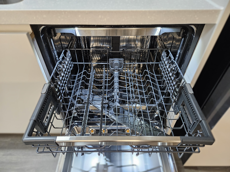 세척 시작: 문을 닫고 시작 버튼을 누르면 세척이 시작됩니다. 세척 및 건조가 완료되면 자동으로 문이 열리고, 식기가 깔끔하게 건조된 상태로 나오게 됩니다.